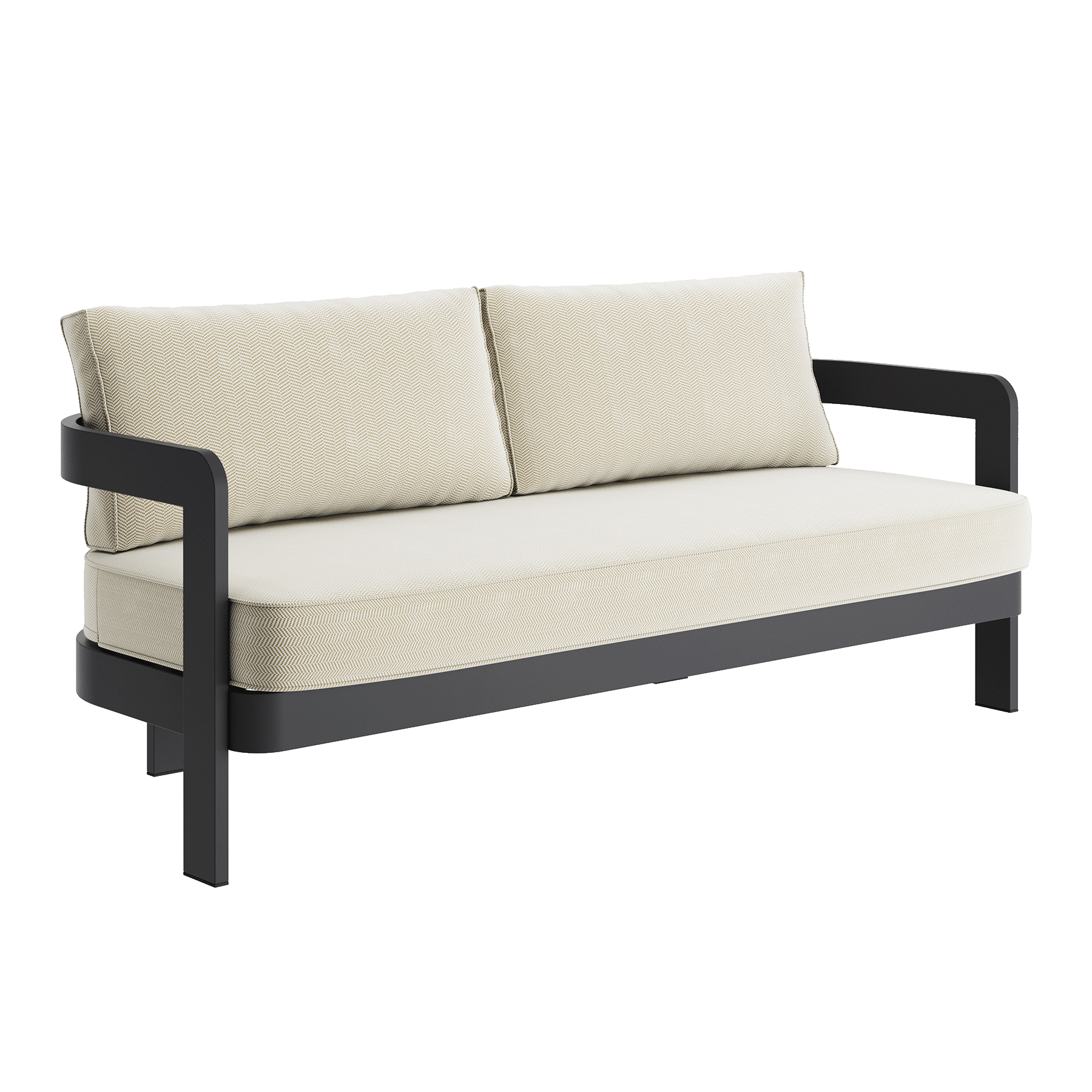 The N3 collection pays homage to the modern concept of proportion and architectural intricacy. The N3 Sofa is meticulously constructed from robust aluminium with a Kohl powder coated finish. Its clean lines are juxtaposed with its gracefully curved backrest, accompanied by two supporting side legs and and two subtle legs at the rear.
